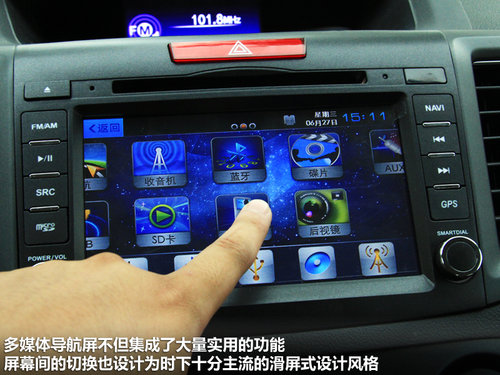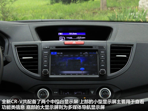 除了中控臺頂部的小型顯示屏外,全新CR-V還配備了另一個大尺寸多媒體導(dǎo)航屏。多媒體系統(tǒng)具備大量可控功能,簡易的操作方式與蘋果產(chǎn)品的操作形式十分相似,時尚程度有很大提升。