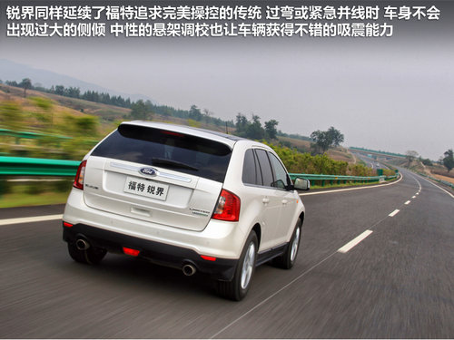 福特一直是崇尚極致操控的品牌,從它所生產(chǎn)的每一款車型中,我們都可以看到這個特點。銳界2.0T同樣延續(xù)了這一傳統(tǒng),前后獨立懸架對于車輛穩(wěn)定性的表現(xiàn)提供了很大幫助,比較適中的懸架硬度也讓這款SUV在經(jīng)過各種路況,以及彎道駕駛時表現(xiàn)的更有韌性。