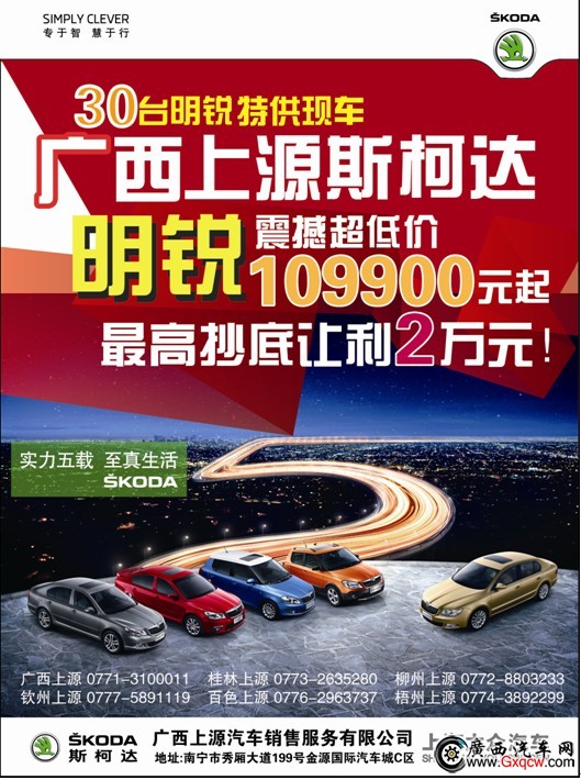 上海大眾斯柯達廣西上源30臺明銳特供現車,震撼超低價109900元起,最高抄底讓利2萬元!詳詢:0771-3100011