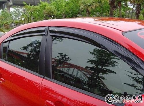 車窗晴雨擋安裝在車窗上方。安裝晴雨檔共有四大優(yōu)點(diǎn):1、下雨時開窗避免雨水直接灌入車內(nèi),防止雨刷刮除之雨水吹入車內(nèi);2.、想透透氣時車窗搖下時,車外所吹進(jìn)氣流不會直接吹拂臉部而影響駕駛和乘客;3、下雨天有些人不想開冷氣除霧,只需開啟一點(diǎn)點(diǎn)的玻璃縫隙,車內(nèi)外的溫差較小、車內(nèi)的擋風(fēng)玻璃表面就不會起霧;4、下雨時想抽煙,晴雨擋就可讓你開窗又不被雨淋濕。