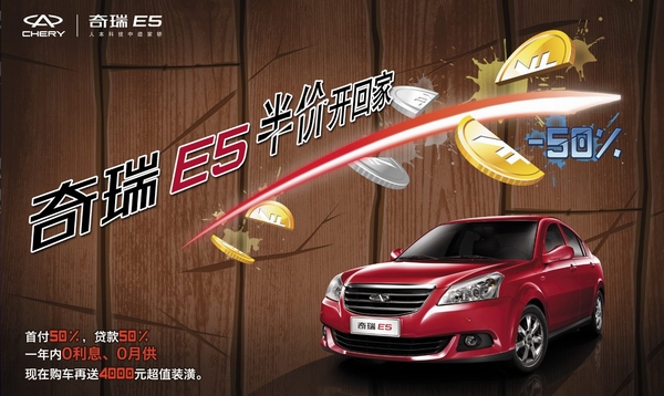 火熱7月,人本科技中級(jí)家轎奇瑞E5迎來上市一周年慶典。一年來,奇瑞E5以其卓越的品質(zhì)和“紛享.易生活”的理念締造了一個(gè)又一個(gè)銷售豐碑。為了慶祝一周歲誕辰,也為了回饋消費(fèi)者一路以來的支持,奇瑞E5特別推出“0首付 0利息 0月供 奇瑞E5半價(jià)開回家”活動(dòng),讓更多的消費(fèi)者“0”負(fù)擔(dān)樂享奇瑞E5卓越品質(zhì);顒(dòng)期間,參與個(gè)貸活動(dòng)購(gòu)買奇瑞E5的消費(fèi)者,還可以享受4000元超值裝潢,優(yōu)惠絕無僅有。