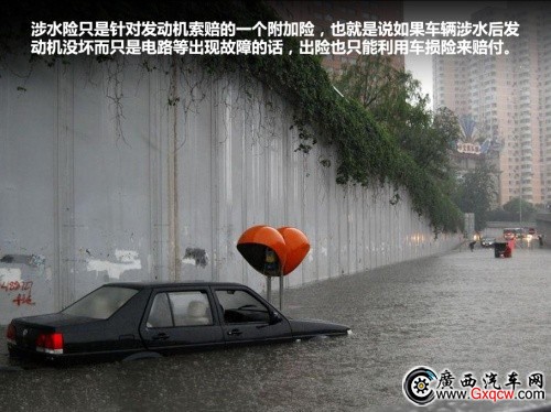 報險后,相信有些車友會慶幸自己買了涉水險,但請注意涉水險只是針對發(fā)動機索賠的一個附加險,也就是說如果車輛涉水后發(fā)動機沒壞而只是電路出現(xiàn)故障的話,出險也只能利用車損險來賠付。需要說明的是保險公司車損險的賠付率一般在70%而涉水險都在80%到85%。