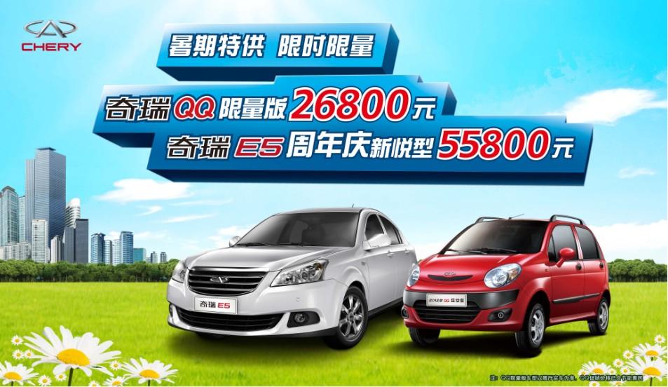 2012年7月1日起,奇瑞QQ重磅推出“暑期特供 限時限量”優(yōu)惠活動,限量版車型僅售26800元,以冰點(diǎn)價格回饋廣大消費(fèi)者,在這個暑假為消費(fèi)者帶來清爽實(shí)惠。