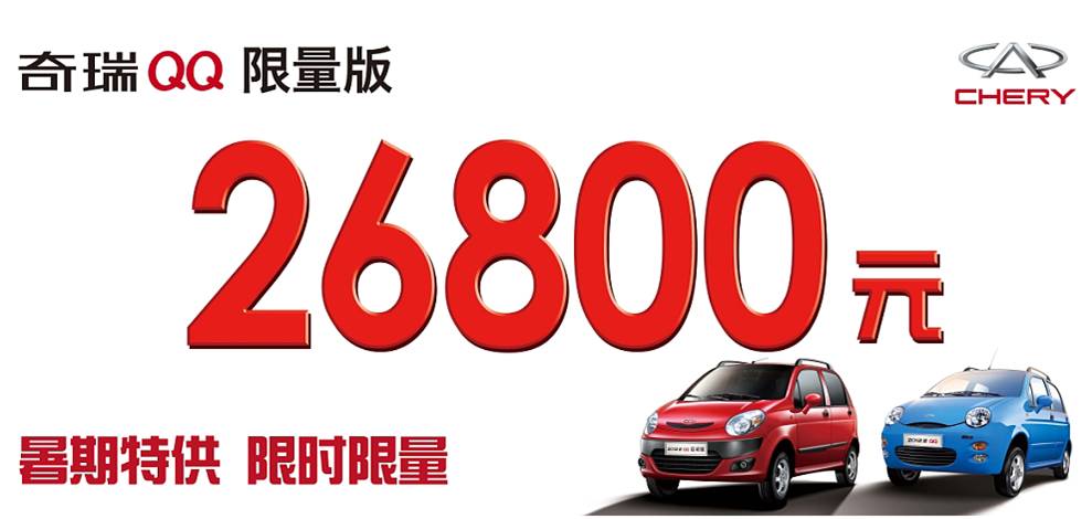據(jù)了解,自今年7月1日起,奇瑞QQ推出限量版車型,售價僅為26800元,以前所未有的優(yōu)惠價格,讓更多消費(fèi)者有能力享受到奇瑞QQ的經(jīng)典品質(zhì)。此款奇瑞QQ限量版車型只在暑期限量供應(yīng),是奇瑞QQ獻(xiàn)給廣大消費(fèi)者的暑期特惠。