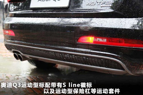 奧迪Q3 40 TFSI quattro 運動型標配帶有S line徽標、運動型保險杠、S line徽標鋁制門檻壓條的“S line外部包”,而針對追求極致動感的用戶,還提供彰顯個性的“S line運動風(fēng)格包”作為選裝!癝 line運動風(fēng)格包”包括:奧迪尊享18英寸輪轂、前排運動型座椅、拉絲鋁飾條、S line內(nèi)部徽標、黑色織物頂棚、鋁制門檻壓條以及翼子板S line徽標。