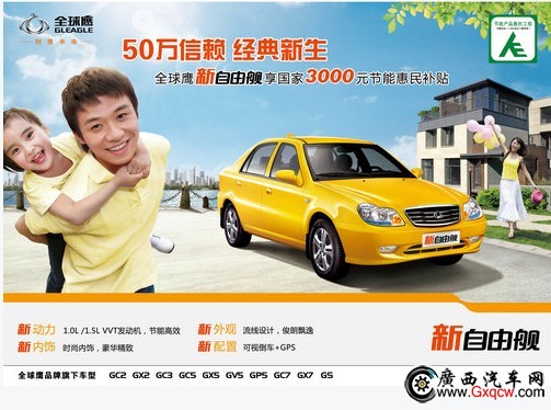 (廣西汽車網(wǎng) 訊)近日,編輯從全球鷹南寧開河4S店了解到,全球鷹新自由艦1.0L、熊貓1.0L車型執(zhí)行“國家節(jié)能產(chǎn)品惠民工程”,用戶購買新自由艦/熊貓,均可享受國家3000元節(jié)能惠民補(bǔ)貼。