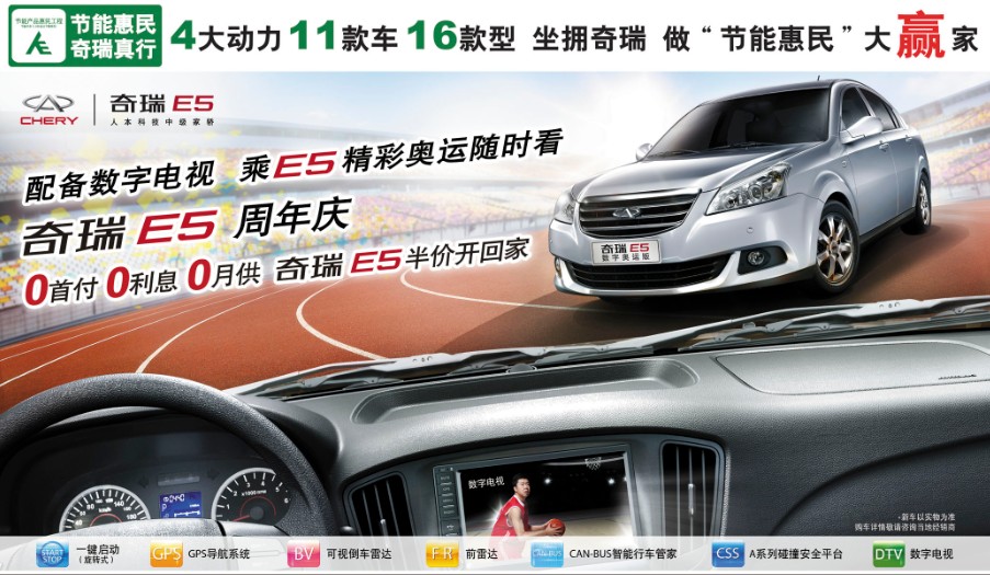 “現(xiàn)在購買奇瑞E5奧運版,可享受3000元節(jié)能惠民補貼和4000元現(xiàn)金。隨著奧運賽事如火如荼的開展,現(xiàn)在咨詢奧運版的客戶越來越多!逼嫒鹌嚹暇4S店負責人告訴記者。作為國內(nèi)10萬元左右唯一一款裝備前駐車雷達、無鑰匙進入、一鍵啟動、后可視倒車雷達、GPS導(dǎo)航、CAN-BUS智能系統(tǒng)等多項人性化應(yīng)用科技于一身的中級家轎,如此超凡的實力外加數(shù)字電視功能及7000元鉅惠,自然引爆消費者的購買激情。來自江西的王先生表示,由于工作原因,下班較晚,而中國隊一些重要的奧運賽事都是在他下班前后,所以他早早就計劃想購入一款可在車內(nèi)觀賞電視的車型,這樣下班可在車內(nèi)比賽看完再回家,但因車價過高遲遲未入手,如今正好遇上E5周年慶及E5入選最新節(jié)能惠民工程,不僅享受國家3000元節(jié)能補貼,還加增4000元購車現(xiàn)金,一下子節(jié)省近7000元,立即決定購買E5奧運版。