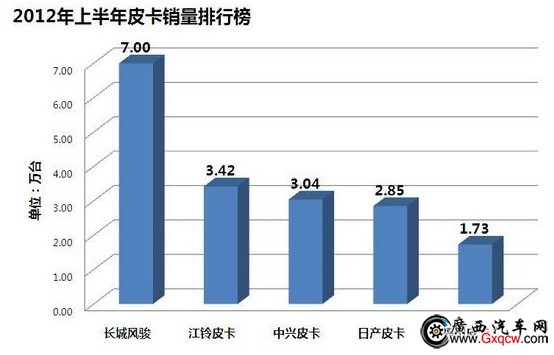 權(quán)威數(shù)據(jù)顯示:2012年上半年,我國汽車?yán)塾嬩N售959.81萬輛,同比增長2.93%。其中乘用車銷售761.35萬輛,同比增長7.08%;商用車銷售198.46萬輛,同比下降10.40%。數(shù)據(jù)直觀顯示:受宏觀環(huán)境影響,我國汽車告別了高增長時代,進(jìn)入低位震蕩期。而作為商用車的細(xì)分市場之一,皮卡市場的表現(xiàn)卻讓人眼前一亮:上半年累計銷售22.2萬輛,突破20萬大關(guān),同比增長18.02%,成為商用車領(lǐng)域為數(shù)不多的逆勢增長部分。