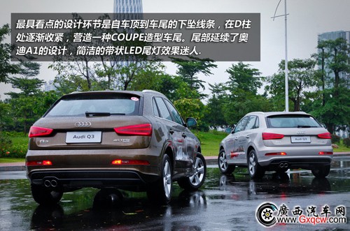 來(lái)自大眾PQ35平臺(tái)的奧迪Q3,車身尺寸為4385mm、1831mm、1608mm,比同平臺(tái)兄弟進(jìn)口大眾Tiguan要小一些。外觀方面仍然保持奧迪的家族風(fēng)格,在奧迪Q7、Q5上見(jiàn)到的倒梯形的大嘴進(jìn)氣格柵在Q3上被演化成了倒梯六邊形格柵,其力量感更強(qiáng)。除了車頭的設(shè)計(jì)亮點(diǎn)比較突出外,奧迪Q3的尾部設(shè)計(jì)則延續(xù)了Q7和Q5上的手法,整體造型沒(méi)有太大的突破。