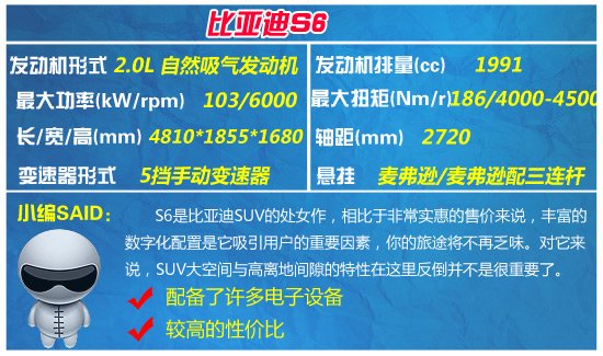 比亞迪S6做為旗下首款SUV車型,難免走借鑒之路,但比亞迪在S6身上可謂下足了功夫,除了寬大的車身,豐富的配置,S6更是采用了承載式車身,力求在競爭相對不是那么激烈的自主城市SUV市場中尋找到一席之地。