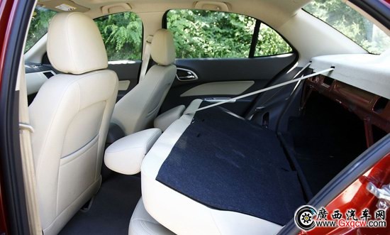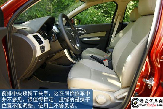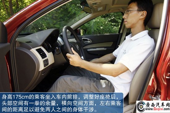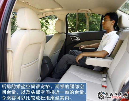 身高175cm的乘客坐入車內(nèi)前排,調(diào)整好座椅后,頭部空間有一拳的余量,橫向空間方面,左右乘客間的距離足以避免兩人之間的身體干涉。前排中央預(yù)留了扶手,這在同價位車中并不多見,很值得肯定,遺憾的是扶手位置不能調(diào)整,從筆者的使用來看,它過于靠后,行車中右手臂無法很好地享受到這個扶手的支撐。