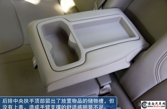 后排同樣預(yù)留了中央扶手,不過扶手頂部留出了放置飲料等物品的儲物槽,且沒有上蓋,加上表面又是硬塑的材質(zhì),比較生硬,手臂的舒適感仍顯不足。