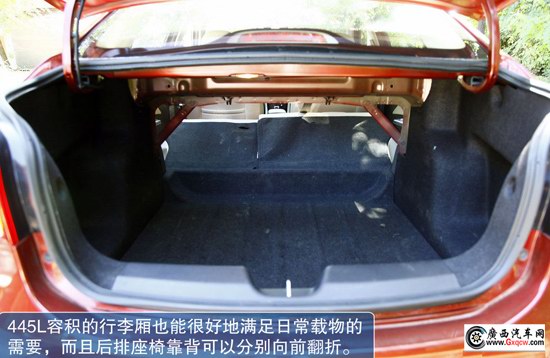 儲物空間方面,寶駿630的表現(xiàn)很出色。除了車內(nèi)豐富的儲物槽之外,445L容積的行李廂也能很好地滿足日常載物的需要。需要時,后排座椅靠背可以分別向前翻折,擴充儲物空間,也能放置更長尺寸的物件,不過座椅并不能完全放平整。