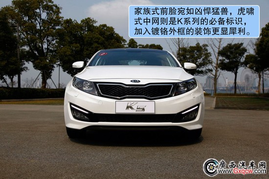 起亞品牌從大眾挖來了頂級(jí)設(shè)計(jì)師彼得希瑞爾,他對(duì)這個(gè)品牌作出的改變,就是讓人們?cè)诼飞弦谎劬湍鼙孀R(shí)出這是起亞的車。從福瑞迪、秀兒、智跑到K2、K3,虎嘯式家族前臉已經(jīng)成為了起亞最明顯的標(biāo)志。K5的前臉設(shè)計(jì)亮點(diǎn)很多,向兩側(cè)延伸的大燈十分修長,配合“虎牙”型的進(jìn)氣格柵,霸氣十足。其下方的霧燈和LED日間行車燈集成到了一起,科技感很濃烈。尾部設(shè)計(jì)上,尾燈與牌照框的銜接則是明顯取自奧迪的設(shè)計(jì)思路,而更為修長的尾燈沒有奧迪那樣的死板,動(dòng)感更強(qiáng)。