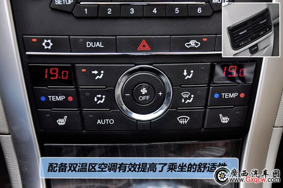 空調(diào)系統(tǒng)為雙區(qū)自動恒溫控制,信息會顯示在中央屏幕內(nèi),并帶有座椅加熱功能。后排也帶有出風(fēng)口,高配車型后排也具有座椅加熱。