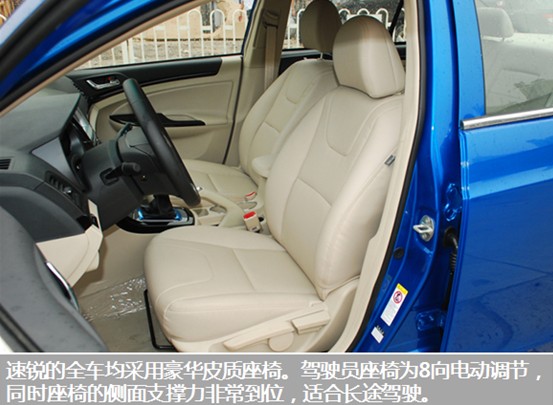 作為比亞迪品質戰(zhàn)略轉型后推出的準B級新銳家轎,速銳的每一處設計都體現出比亞迪的用心。從其座椅設計就可見一斑,全系車型均采用豪華皮質座椅,高配車型的主駕駛座椅更是配備了8向電動調節(jié),同級別車中少見。