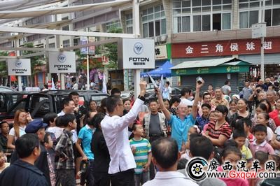 烈日炎炎的中午即將來(lái)臨了,現(xiàn)場(chǎng)觀眾隨著氣溫的升高而有所減少,就在這時(shí)長(zhǎng)城風(fēng)駿5在工作人員的操作下緩緩駛到了主舞臺(tái),緊接著主持人走到風(fēng)駿5的旁邊,把車(chē)前蓋打開(kāi),發(fā)動(dòng)機(jī)打開(kāi),車(chē)子開(kāi)始發(fā)動(dòng)了,現(xiàn)場(chǎng)觀眾看得目瞪口呆,不知道主持人到底想要做什么!這時(shí)主持人拿起手中的話筒,說(shuō)道:“一會(huì)誰(shuí)要是能回答對(duì)了我提出的問(wèn)題,就可以進(jìn)到車(chē)?yán)锩孢M(jìn)行尋寶,最大的禮品是價(jià)值3880元的海南雙人五日游。”正要離去的觀眾都紛紛湊近舞臺(tái)。