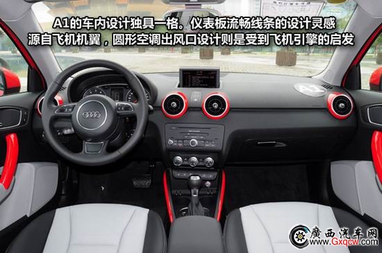奧迪A1 Sportback車內(nèi)設(shè)計(jì)獨(dú)具一格。儀表板流暢線條的設(shè)計(jì)靈感源自飛機(jī)機(jī)翼,圓形空調(diào)出風(fēng)口設(shè)計(jì)則是受到飛機(jī)引擎的啟發(fā),這樣的設(shè)計(jì)能為駕駛者營(yíng)造出飛翔于機(jī)翼之上的感受。與之相呼應(yīng)的底部中控臺(tái)明顯借鑒了帆船賽艇尾部的造型,簡(jiǎn)潔流暢且不失動(dòng)感。