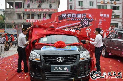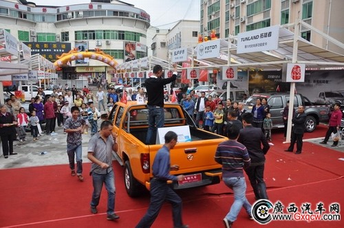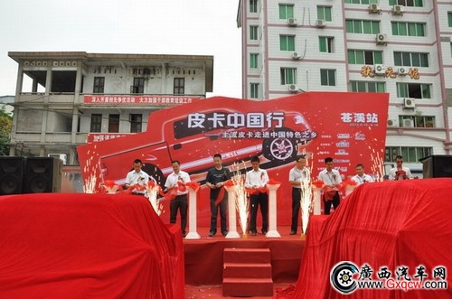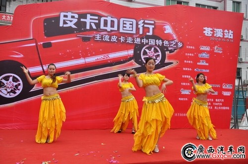 “2012皮卡中國行——主流皮卡走進(jìn)中國特色之鄉(xiāng)”蒼溪站活動,于9月15日在蒼溪電影院停車場正是拉開帷幕,此次活動有來自江淮、江鈴、海格、長城、黃海、福田六大中國主流皮卡品牌的15款車亮相蒼溪,給當(dāng)?shù)厥忻穹钌狭艘粓鼍澜^倫的皮卡文化盛宴。