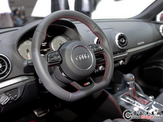 內(nèi)飾方面,奧迪S系列專屬徽標遍布車內(nèi),帶有鋁制換擋撥片的三輻式運動方向盤為S3的專有設(shè)計,與A3 S-Line的方向盤相比顯得更加高檔、儀表盤指針由紅色變成了灰白色配合全黑色內(nèi)飾顯得更加運動。此外,采用Nappa提供的真皮材料打造的運動座椅將為駕駛者提供更好的支撐。