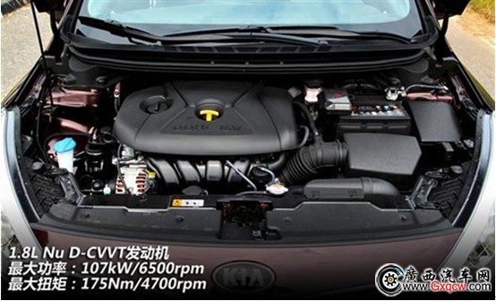 K3將提供1.6L排量γ DVVT和1.8L排量Nu DVVT兩款自然吸氣發(fā)動機,除了1.6L有兩款車型配備6速手動變速箱外,其余5款車型均匹配6速自動變速器。整體動力系統(tǒng)配置和朗動也都是一樣的,只不過朗動要多一款1.8手擋車型。1.6L發(fā)動機提供128馬力(94kW)的最大功率,以及156Nm的最大扭矩;而1.8L發(fā)動機提供146馬力(107kW)的最大功率和175Nm的最大扭矩。