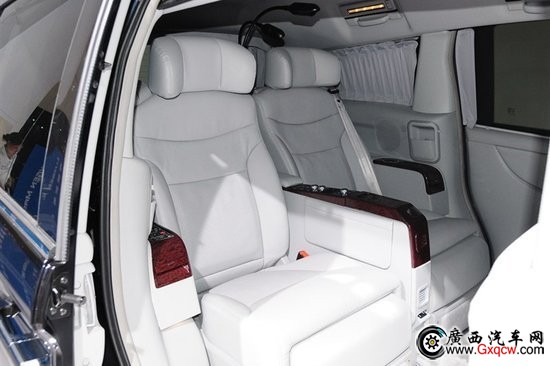 納智捷Master CEO后排空間舒適豪華,寬大電動(dòng)真皮座椅,多種角度可調(diào),LED閱讀燈、加熱、通風(fēng)、按摩等功能一應(yīng)俱全。與上一代車型相比,納智捷Master CEO主要改進(jìn)在乘客的乘坐舒適性上,增加后排乘客座椅功能,同時(shí)還增加了后排投影功能。當(dāng)中央隔屏升起時(shí),由于前后艙變成了兩個(gè)獨(dú)立的空間,因此還增加了前后艙通訊對(duì)講系統(tǒng),以及深色玻璃,電動(dòng)滑門、后窗及尾門窗部分均加上了不透光材質(zhì)的環(huán)艙電動(dòng)窗簾,以進(jìn)一步確保后排的私密性。