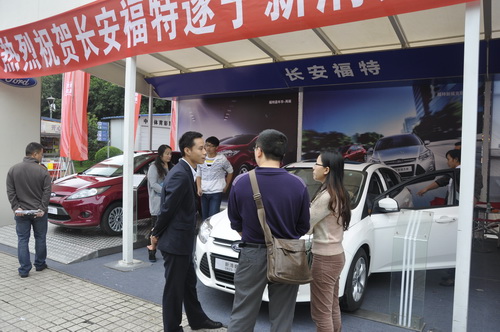 遂寧新清巍車業(yè)有限公司銷售經(jīng)理張偉告訴筆者,他們是9月28日剛剛搬遷新址并升級(jí)為4S店,開業(yè)伊始,就有機(jī)會(huì)參加西部巡展,組委會(huì)還特意安排了珍貴且有限的新車揭幕活動(dòng),他們也十分珍惜。為了這難得的機(jī)會(huì),他們拿出了幾乎與9月初成都車展持平的促銷政策來回饋遂寧市民。經(jīng)過溝通,筆者進(jìn)一步了解到,長(zhǎng)安福特品牌在遂寧市場(chǎng)表現(xiàn)非常出色,新?怂挂钥诒A得懂車、愛車一族青睞,蒙迪歐、嘉年華等車型也擁有各自的客戶群。從現(xiàn)場(chǎng)拍攝的照片中,可以佐證張經(jīng)理的說法。