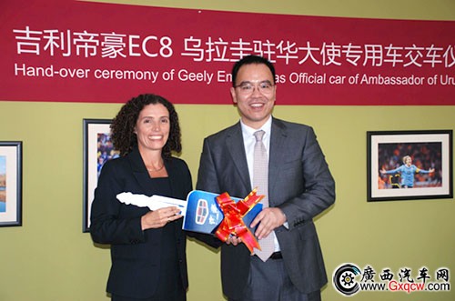 9月26日,“吉利帝豪EC8 烏拉圭駐華大使專用車交車儀式” 在烏拉圭駐中國大使館舉行。吉利帝豪EC8正式交付烏拉圭駐華大使館,成為大使閣下專屬座駕。駐華大使波特利女士表示,之所以選擇購買吉利帝豪EC8作為自己的座駕,是因?yàn)樗中湃渭放,她認(rèn)為吉利的產(chǎn)品品質(zhì)已經(jīng)具有國際水準(zhǔn),在造型、安全和乘坐體驗(yàn)等方面都給她留下深刻印象。