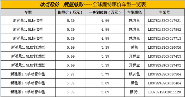 新遠(yuǎn)景特價車: