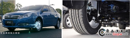 速銳采用了前麥弗遜獨立懸掛,后扭力梁懸掛,這也是目前同級車中廣泛使用的懸掛組合。但速銳增加了左右縱梁和前橫梁,加強(qiáng)了前懸的強(qiáng)度和剛度,增加了整車的行駛穩(wěn)定性。而且該車避震器阻尼設(shè)定適中,比較有韌性,低速時對細(xì)微震動的過濾很好,并沒有明顯的松散感,高速過彎時,不錯的懸掛韌性使得車身回正速度較快,這點值得肯定。
