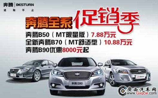 從2006年到2012年,由單一一款車型發(fā)展到如今奔騰B70、奔騰B50、奔騰B90全面布局。6年時間里,奔騰以優(yōu)異的產(chǎn)品品質(zhì)和良好的服務(wù)贏得近47萬用戶的認(rèn)可。為回饋廣大厚愛和支持奔騰的消費者,奔騰選擇在這個金秋時節(jié),推出全系促銷的超值優(yōu)惠價格,以及三重好禮的連番驚喜。無論是全新奔騰B70、奔騰B50還是奔騰B90,相信對于喜愛奔騰的消費者而言,目前出手任何一款,絕對都是物超所值!