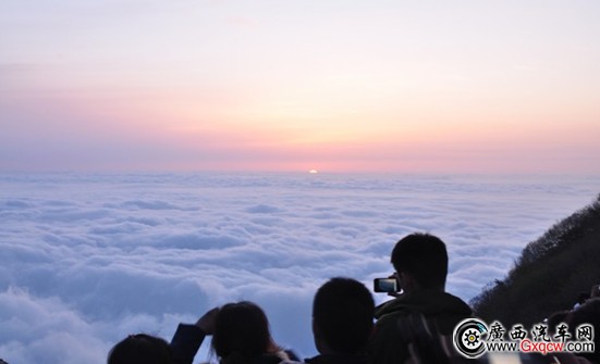 大約在凌晨五點(diǎn)半左右,東方天際出現(xiàn)了魚(yú)肚白,洶涌的云海已經(jīng)開(kāi)始擴(kuò)散開(kāi)來(lái),能在泰山之巔看見(jiàn)云海也算是不虛此行。隨后在人們的歡呼聲中,太陽(yáng)漸漸探出了頭,在云海的簇?fù)硐,一輪火球冉冉升起。整個(gè)過(guò)程只持續(xù)了短短幾分鐘,但是壯觀(guān)的景象卻很令人難忘,當(dāng)然歡呼之余,我們也沒(méi)忘拍下那激動(dòng)人心的一刻。