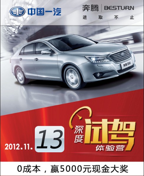 廣西鉅榮一汽奔騰將于11月24日在廣西體育中心舉行奔騰B90深度試駕活動(dòng),即日起鉅榮奔騰將開展系列精彩活動(dòng)等您來挑戰(zhàn)!