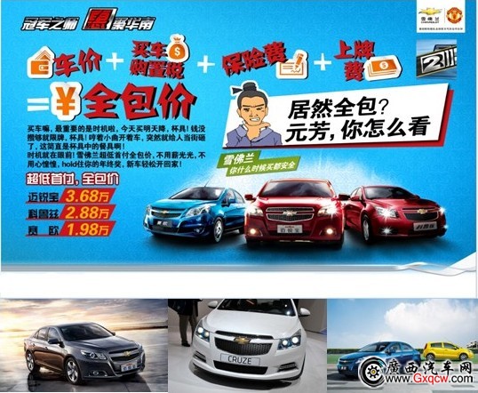 無車一族看到下面的信息更要hold住,屬于屌絲們的“華麗逆轉(zhuǎn)”已吹響征集號角!雪佛蘭即將推出新賽歐、科魯茲、邁銳寶2013款冠軍系列車型,分別以1.98萬、2.88、3.68萬“車價+買車購置稅+保險費+上牌費”的超低首付全包價傾情巨獻東盟車展。相比前面三款編輯推薦的“只可遠(yuǎn)觀而不可褻玩”的“冠軍”車型,雪佛蘭2013款冠軍車系是唯一一款能讓廣大百姓隨心所欲就能開走的“冠軍”車型。