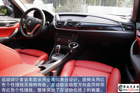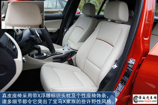 X設(shè)計(jì)套裝車(chē)款的內(nèi)飾中采用運(yùn)動(dòng)真皮方向盤(pán),Nevada真皮座椅采用帶X浮雕標(biāo)識(shí)頭枕及個(gè)性座椅飾條,腳墊帶有配色滾邊設(shè)計(jì),諸多細(xì)節(jié)都讓這個(gè)車(chē)款突出了寶馬X家族的些許野性風(fēng)格。
