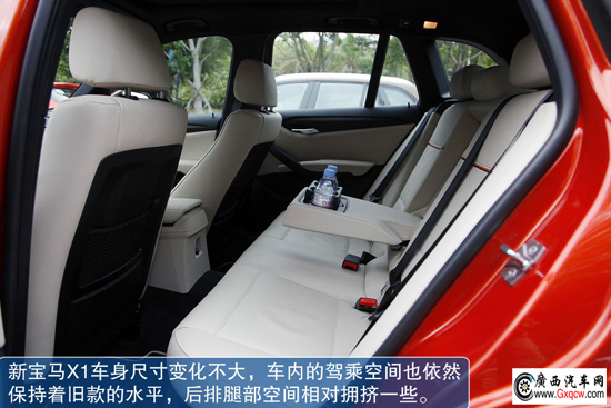 新寶馬X1車身尺寸變化不大,車內的駕乘空間也依然保持著舊款的水平。既然是緊湊級的小車,只要不對X1的車內空間奢望太高,它也不會讓我們失望,雖然后排腿部空間比較局促,不過只要不是長途乘坐,空間上還是可以接受的。