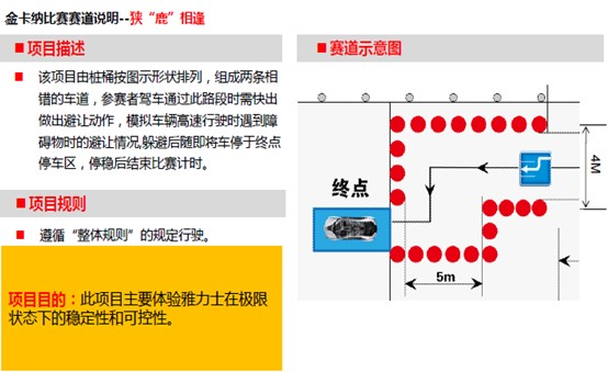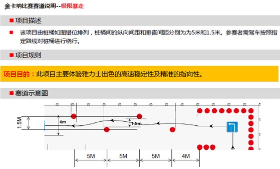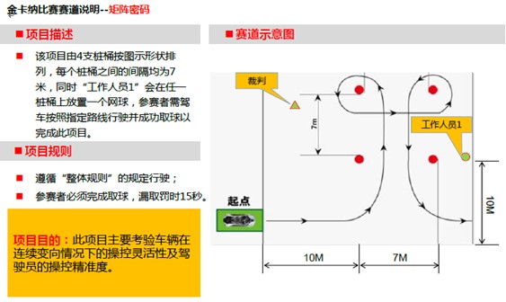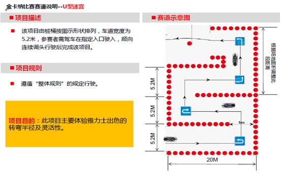 以參賽者駕車完成所有項(xiàng)目所用的時間為評選依據(jù),時間越短排名越靠前,獲獎?wù)邔②A得豐厚大獎。每位參賽者有2次挑戰(zhàn)機(jī)會,所有參賽者取其最好的成績?yōu)樽罱K成績;