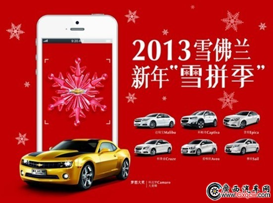 手機(jī)用戶在APP store或Android store搜索、下載“雪拼季”游戲,參與雪佛蘭億元“雪拼季”活動(dòng),還有機(jī)會(huì)獲得購(gòu)車禮金、iPhone 5和大黃蜂科邁羅跑車使用權(quán)!更多驚喜詳詢弘澤雪佛蘭0771—4866008 、4866009。