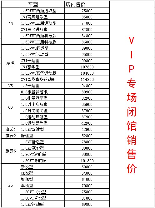 主營業(yè)務(wù):銷售車型:奇瑞艾瑞澤7、瑞虎、A3、風(fēng)云2、E5、A1、旗云5、旗云1、旗云2、旗云3、QQ3、及奇瑞汽車全系售后服務(wù)、零配件供應(yīng)、信息反饋。