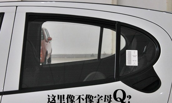 新QQ的車身側(cè)面是整車的亮點(diǎn)之一,后門把手設(shè)計(jì)的和前門不一樣,和后車窗是連在一起的,整體看上去像一個(gè)字母“Q”,很有特點(diǎn)。而比亞迪F0的前門比較大,所以側(cè)窗的面積也跟著增大,讓視野更加開闊。