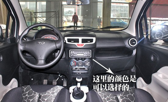新QQ的內(nèi)飾布局很簡單,沒有什么復(fù)雜的設(shè)計(jì),中控面板的顏色是可以選擇的,消費(fèi)者可以根據(jù)自身的喜好進(jìn)行挑選。比亞迪F0的內(nèi)飾設(shè)計(jì)也很簡潔,中控面板以黑色為主。