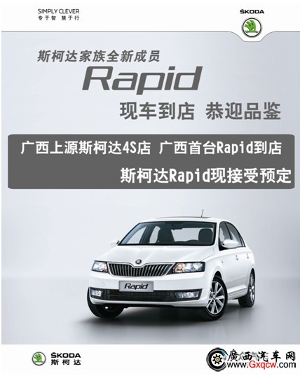 斯柯達(dá)Rapid現(xiàn)車到店,您不想一睹為快嗎?廣西上源斯柯達(dá)誠(chéng)邀您到店賞車品鑒,現(xiàn)在更是火熱預(yù)訂接受中。您還等什么?趕緊來(lái)廣西上源斯柯達(dá)4S店賞車、預(yù)定吧!親!預(yù)訂名額有限,先到先得哦!