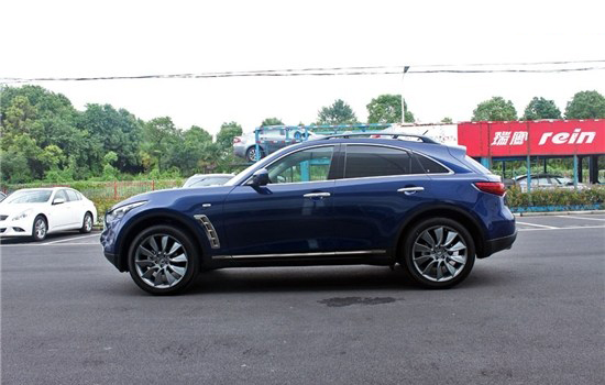 車身側(cè)面,低矮動(dòng)感的風(fēng)格在車身側(cè)面完全體現(xiàn)出來(lái)了,一條腰線從前門一直上揚(yáng)延伸至車尾,給人帶來(lái)一種視覺的沖擊。車身長(zhǎng)、寬、高分別為4732/1854/1680mm,軸距為2710mm,相對(duì)于同級(jí)別車型還是有競(jìng)爭(zhēng)力的。而從側(cè)面可以看出,有點(diǎn)山寨英菲尼迪FX系列。