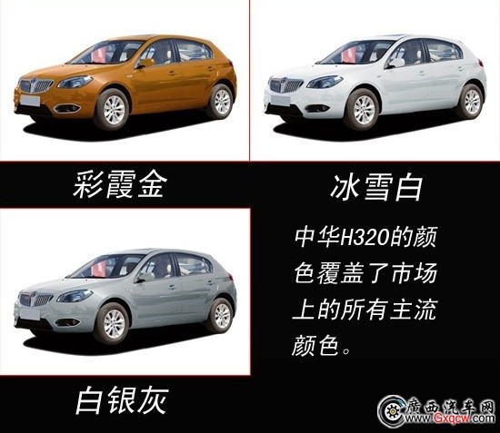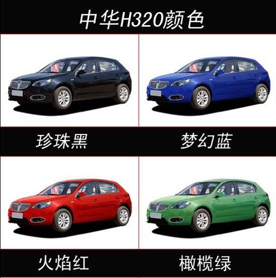 中華H320共有7款顏色可以選擇,分別為珍珠黑、夢(mèng)幻藍(lán)、火焰紅、橄欖綠、彩霞金、冰雪白和白銀灰,這也覆蓋了市場(chǎng)上的所有主流顏色,我個(gè)人推薦火焰紅和冰雪白,因?yàn)檫@兩款顏色既不呆板也不做作。