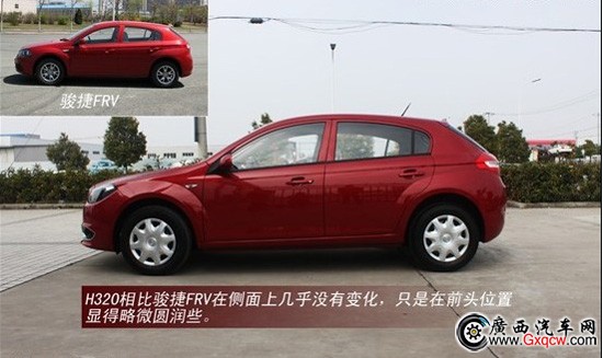 車身側(cè)面,H320相比駿捷FRV幾乎沒有變化,只是在前頭位置顯得略微圓潤些。H320配備的輪胎是尺寸為195/65 R15的萬力輪胎,需要提出的是,鋁合金輪轂不是標(biāo)配,低配車型配備是普通鋼轂。