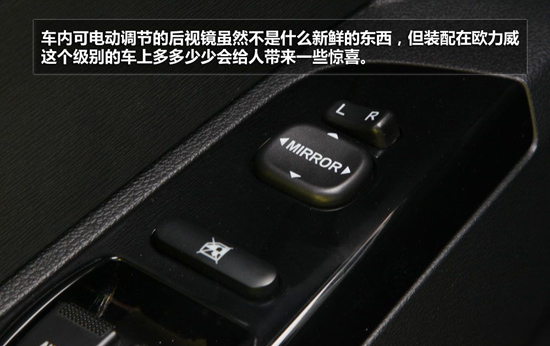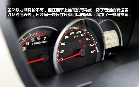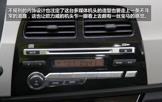 中部多媒體機(jī)頭的設(shè)計(jì)感很強(qiáng),乍一看還有一點(diǎn)寶馬的味道,如果只從細(xì)節(jié)來看的話,你絕對(duì)想象不出歐力威的外觀是這個(gè)樣子的。而從功能來看的話,雖然沒有什么高科技可言,但滿足日常的實(shí)用已經(jīng)足夠了。