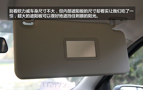 遮陽板的尺寸是這會(huì)比較讓我意外的一個(gè)地方,這樣打的遮陽板是我們?cè)谄匠5能囆蜕虾茈y見到的,從此可以看出長(zhǎng)安這次在歐力威的身上并沒有偷工減料的行為。