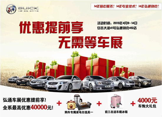 看著別人開新車出游,你還在坐等車展優(yōu)惠?不用等了!4月9-14日,安吉弘通別克4S店提前釋放車展優(yōu)惠,帶你迎接鉅惠風暴。活動期間,購任意車型均可提前享受車展特惠價格+送4000元大禮包,另外,當天前三名到店購車客戶即可送車載冰箱一個,更有多款專屬家電任選其一,弘通別克4月眾惠全城,一觸即發(fā)。