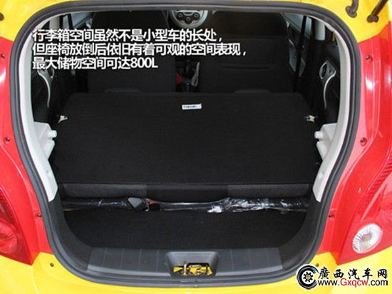 除此之外,行李箱空間雖然不是小型車(chē)的長(zhǎng)處,但座椅放倒后依舊有著可觀的空間表現(xiàn),最大儲(chǔ)物空間可達(dá)800L對(duì)于這種代步小車(chē)來(lái)說(shuō)已經(jīng)難得了。