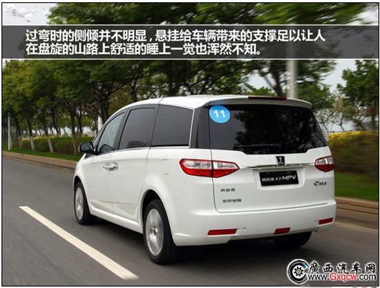 因?yàn)榇? MPV的車身較高,所以我很擔(dān)心它在過彎時(shí)的側(cè)傾會(huì)比較明顯,不過其懸架表現(xiàn)還是很出乎我意料的,坐在車內(nèi)能明顯感覺到過彎時(shí)的側(cè)傾并不明顯,懸掛給車輛帶來的支撐足以讓人在盤旋的山路上舒適的睡上一覺也渾然不知。